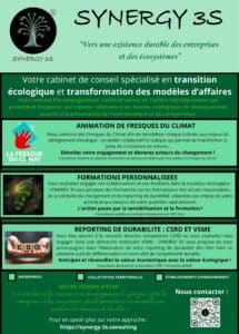 Afin de permettre des actions efficientes et impactantes, SYNERGY 3S accompagne les entreprises, les collectivités et les établissements d’enseignement en proposant des formations sur des thématiques essentielles et orientées vers la transition écologique. L’apprentissage porte aussi bien sur des sujets environnementaux que sur des sujets de stratégie d’entreprises : RSE, CSRD, résolution de problèmes stratégiques, méthodes de conduite du changement,… Des thématiques cohérentes, convergentes et interdépendantes qui rappellent à quel point l’écologie est très étroitement liée à l’économie et qu’il est possible d’en faire un ensemble harmonieux, fonctionnel et durable.